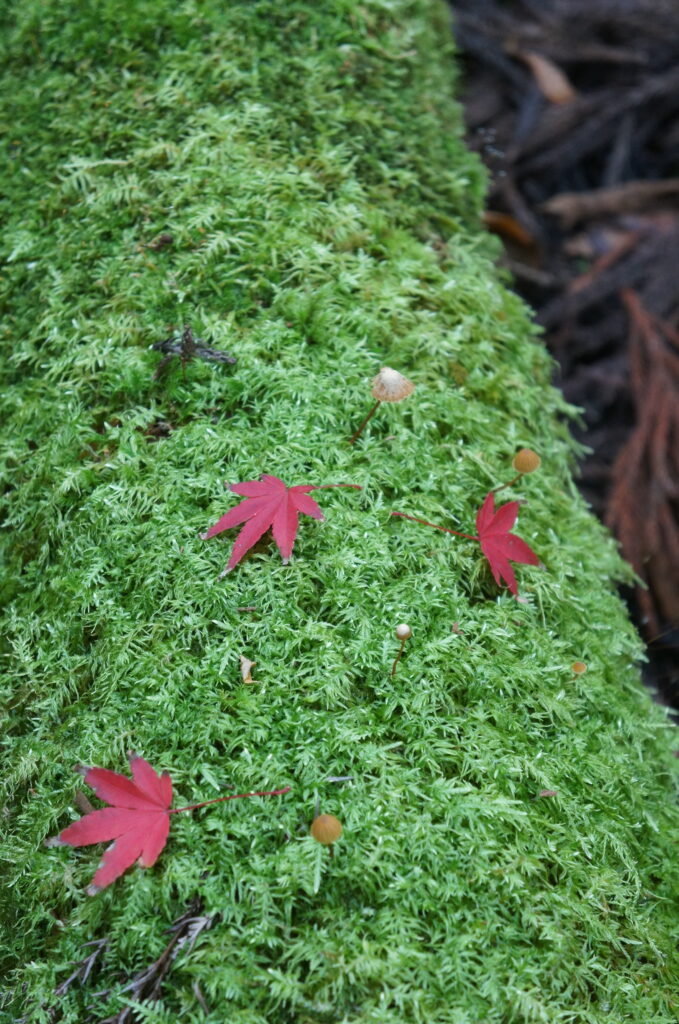 この日の野外撮影会は、参加者が猪坂先生を含めて15名でした。それぞれの腕前は違いますが、ガイド役の仲間に穴場を紹介されてもレンズの向く先はほぼ同じになりがちです。でもみんな長年の強者です。心理的に同じ写真に偏らないようにそれぞれが被写体の求める方向が違います。たとえばこの写真なんか現地で見ればなんの変哲もない苔の生えた倒木ですが、視点を変えれば立派な作品となります。