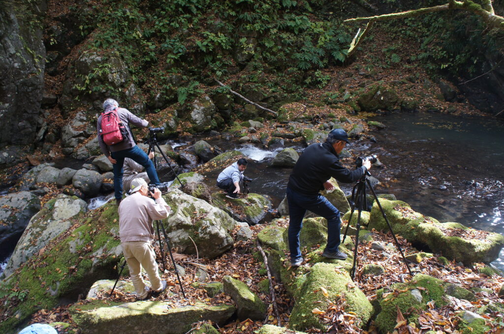 八田コミセン・カメラ講座は、講座開設から20年が経ちます。現在講座生は28名在籍しています。6月頃の開講式から始まり、カメラ講座(座学)・野外撮影会・講座生の写真展で年間行事が終了します。今回秋の野外撮影会を実施しました。今年の撮影地は。養父市大屋町の横行渓谷です。メンバーの中に大屋在住の講座生さんが2名おられます。地元を知り尽くしたお二人にガイド役をお願いして撮影スポットのアドバイスを受けながら参加者各自工夫を凝らしてシャッターを押しました。