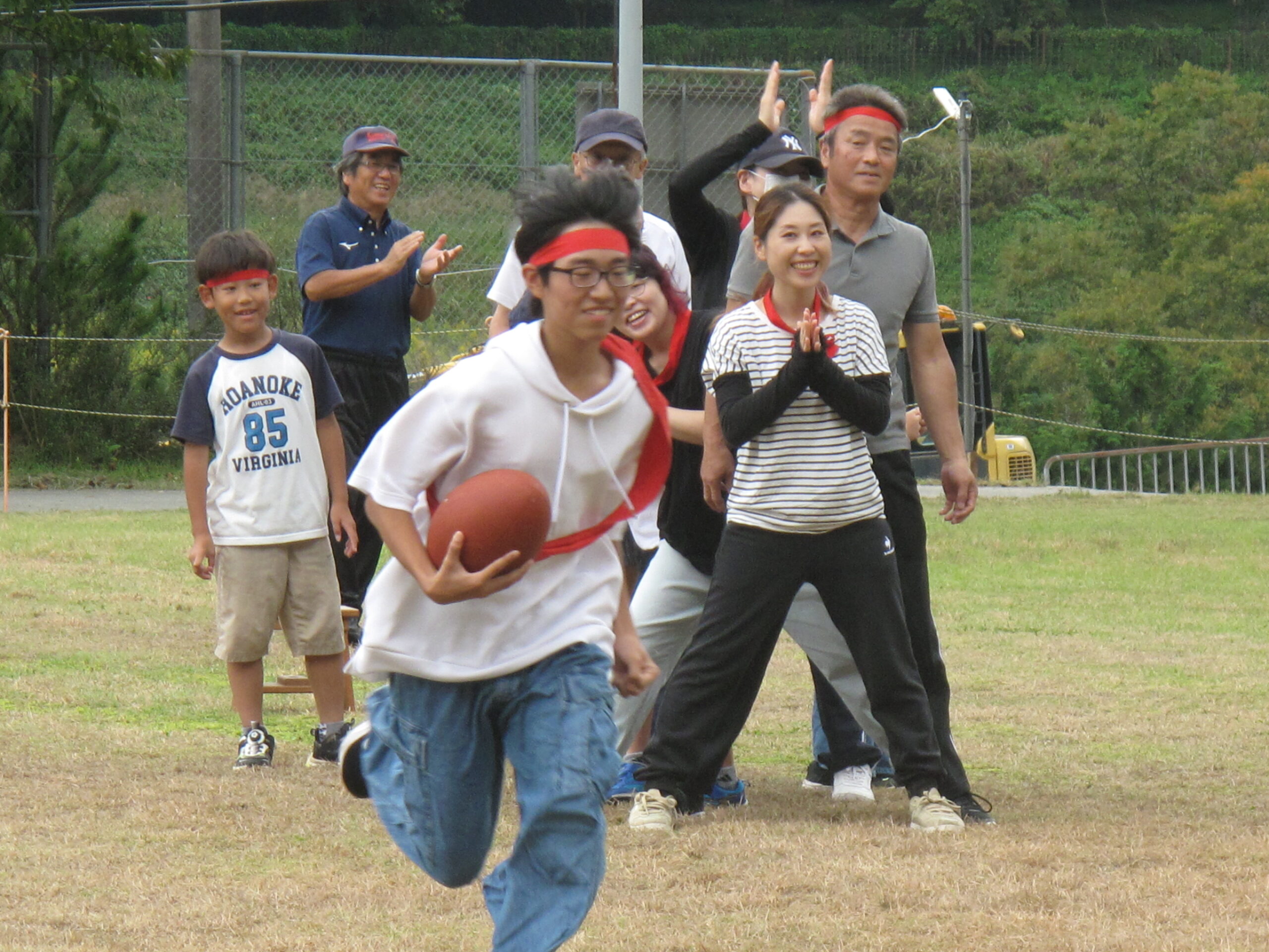 令和7年10月12日(土曜日)の八田防災広場(新温泉町千谷37)は、曇り空の朝露が気になるコンディションでしたが、午前8時頃から実行委員による会場準備が進められ、午前9時の開会を前に地域の方々も続々と集まり始めました。運動会の開会にあたって、実行委員長(岡田 勲 宮脇区長)・副実行委員長(川元康徳 スポーツクラブ21八田会長)・来賓(中村 茂 町議会議員)の順にご挨拶をいただき、前年優勝の千谷・奥三地区(宮脇・内山・越坂)チームから優勝トロフィーの返還、千谷区の児童による“誓いのことば”がありました。その後前半の演技が始まり、途中休憩を挟んで行われた後半の演技が終わると、いよいよ参加者お待ちかね“お楽しみ抽選会”と成績発表がありました。今回優勝トロフィーを手にしたのは“千原・あさひヶ丘チーム”です。最後に井上至信 鐘尾区長の講評で八田地区運動会は閉会になりました。今回は多くの子どもさんがご家族とともに参加、総勢97名が八田防災広場に集いました。
