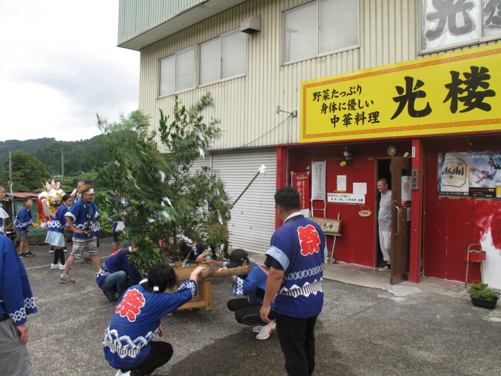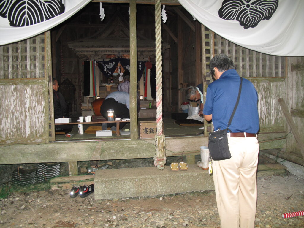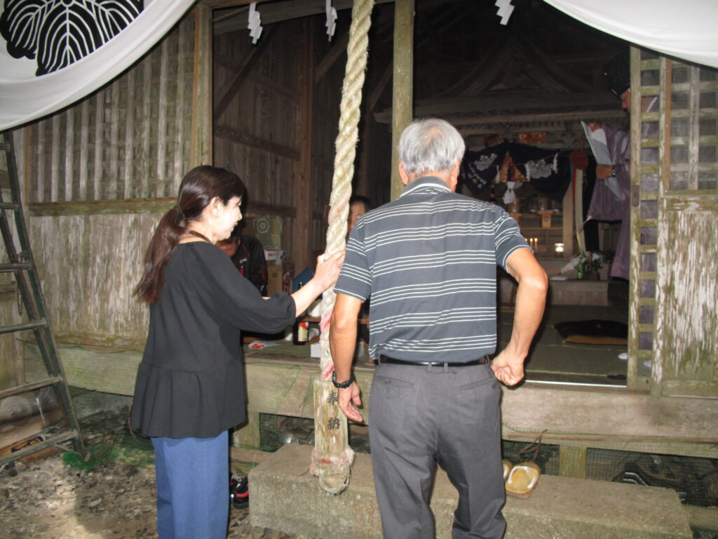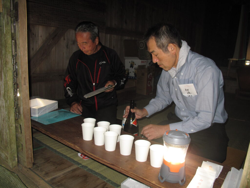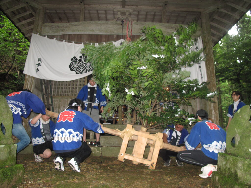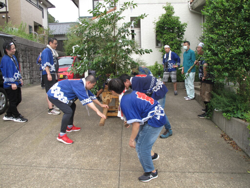 9月19日は八田統一まつり 八田地区の多くの集落で秋祭りが行われました。今年は「千原若一神社」の秋祭りを取材しました。早朝から準備やお詣りのために人が集まり始め、午前8時ごろから美方郡香美町小代区の多他神社(オオタジンジャ)からお招きした神主さんによる神事がありました。神事の後は雨上がりの青空の下、地区の青年会「若一会」による恒例の「榊神輿」に加え、今年は地区の子どもたちの希望によって大きな酒樽でこしらえた「子ども神輿」も集落内を隅々まで練り歩きました。また、多くの家々では飲物やお菓子などを用意して神輿を待つなどの接待がありました。